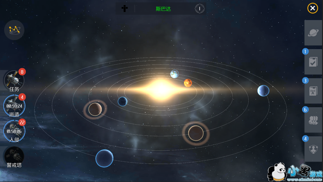 在星域星图中选择特定的恒星系后即可进入星系星图,星系星图的主要功能是显示恒星系内的星体,以及分类罗列所有在该恒星系中可供进行的玩法内容:
