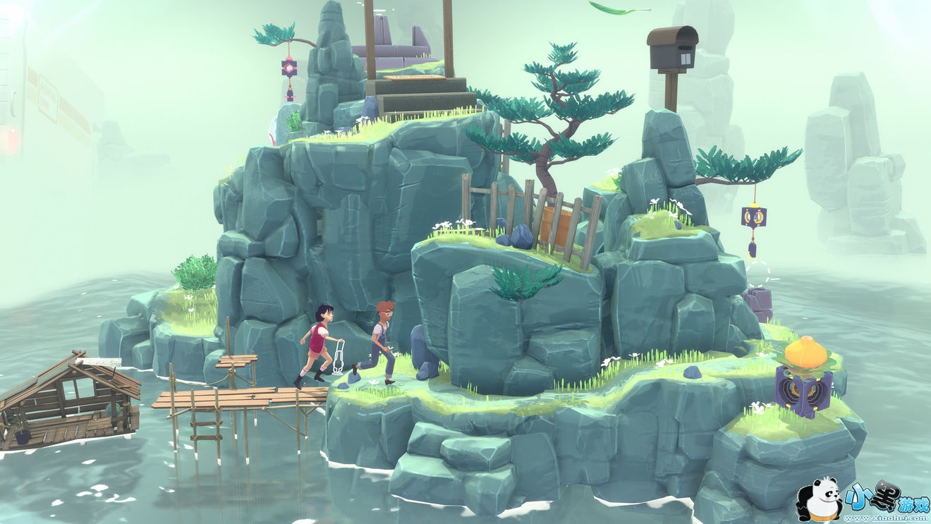 其中的男孩和女孩,采用同步的双视角操作:女孩提着一只煤油灯,男孩有着打开神秘机关的能力。