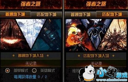 玩家在达到95级之后可以在卡西利亚斯处进行强者之路前置任务的完成,玩家在进入频道之后就可以选择模式入场了,主要模式分为普通地下城和匹配地下城,在简单模式中玩家可以在非组队或者2到4人组队的模式下进行,而英雄和匹配模式玩家只能通过4人组队进行。