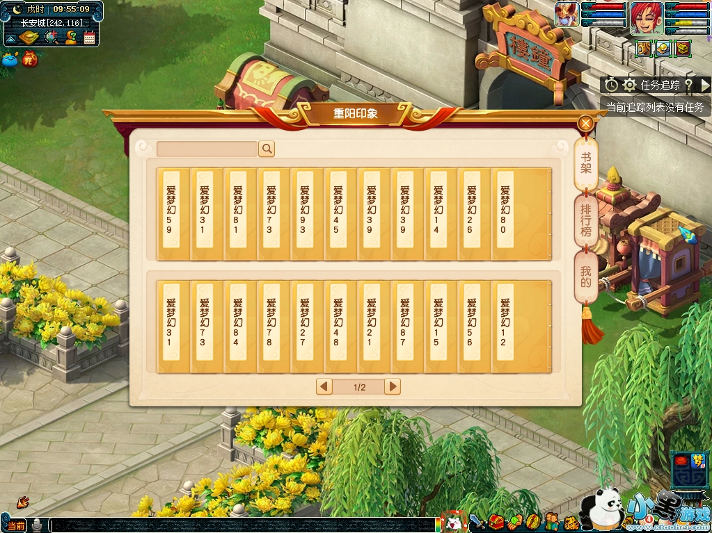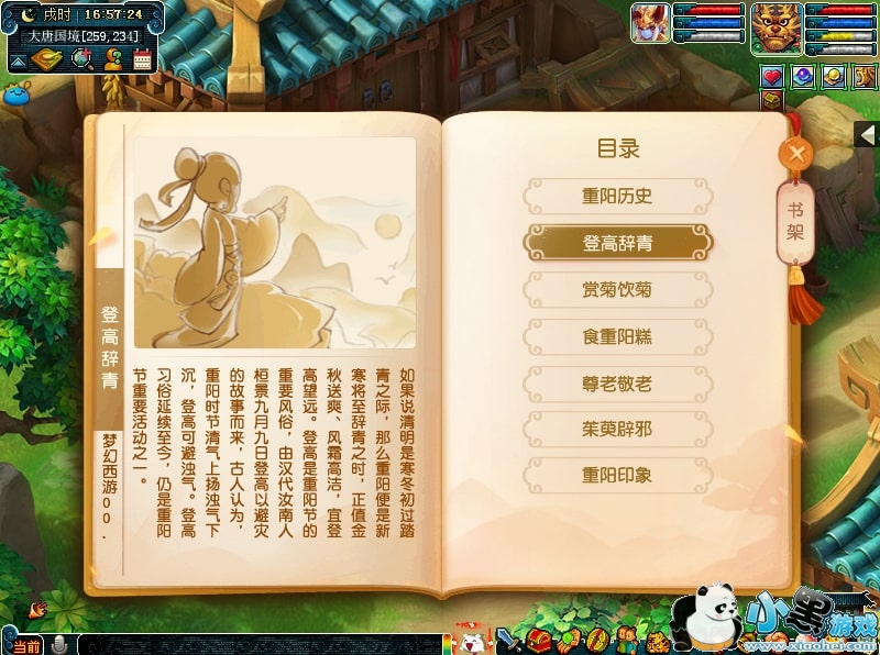 2、shift+左键点击道具栏内的《重阳印象》画册,可将画册分享至好友聊天栏或聊天频道。