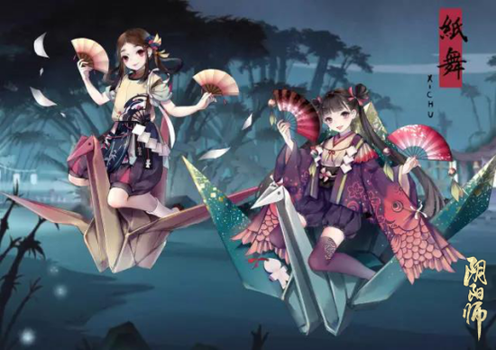 乘坐在千纸鹤上持着小扇的少女妖怪活泼又机灵,偶尔会想着跟人类恶作剧一下,在无风的时候让家中的纸张自动飞舞,吓他们一跳。