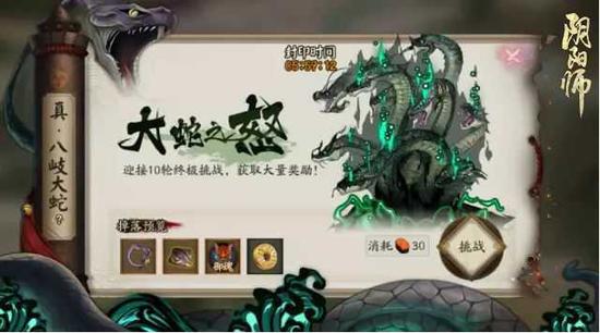 如此终极挑战,当然被设定了一定的进入门槛。1分钟内单人通关八岐大蛇御魂副本10层,即可获得大蛇印记。拥有大蛇印记的阴阳师在通关御魂副本10层时,有概率发现“真·八岐大蛇”副本,副本存在6小时,逾期未挑战将会消失。玩家可选择单人挑战,或邀请好友、寮友一起组队,不同挑战模式下需配置不同数量的式神。