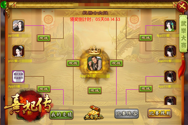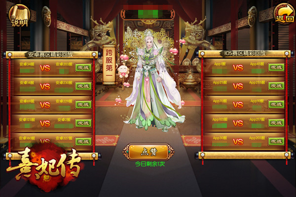 既然参与了跨服竞技,一定是希望可以登上巅峰,俾睨偌大后宫,因此,在跨服竞技中,除了可以为参赛选手加油助威,还可以在系统中观赏到冠军夺冠的赛事回放。最终决赛后,会邮件通知后宫小主们跨服竞技的名次,夺冠的小主可以充分感受来自整个宫廷的膜拜与欣羡,并且精彩赛事回放会一直展示至下次跨服竞技场报名开始哦,享受荣誉的时间非常充足呢。