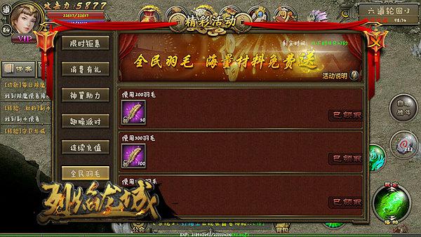 大家注意羽毛活动也是分很多种的。这种使用羽毛送羽毛的全民活动,就非常好。还有一种也不错,看大家对翅膀升级的兴趣大小了!(充值有分寸,游戏有乐趣~)