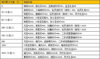 1、 活动期间,单日累计充值满对应金额即可领取对应奖励,每档奖励每天均可参加1次;