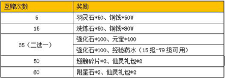 活动内容:活动期间,将士们累计赠送伙伴礼物达到一定次数,即可在活动面板领取双倍好礼福利。海量羽灵石、大量洗炼石、翅膀碎片、附星石、大量仙灵礼包等实惠奖励,赶紧为自己的伙伴奉上自己的亲切祝福吧~