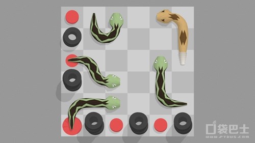 游戏的场景非常简单,整体的美术风格偏向时下流行的小清新。在游戏中,本来浑身透露出冷冽、攻击性的蛇变得温暖无害,清新的配色让他们多出了几分萌萌的感觉。骇人和温暖之间,仅仅依靠低模风(low-poly)的设计就能营造出差异感,这也是这种风格备受开发者推崇的原因吧!