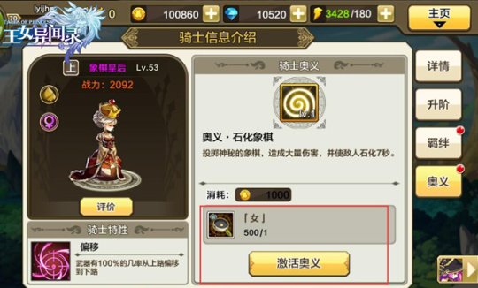 在激活奥义之后可以开始养成,只要放入足够的材料就可以让骑士的奥义进行升级,升级之后的奥义更加强力。
