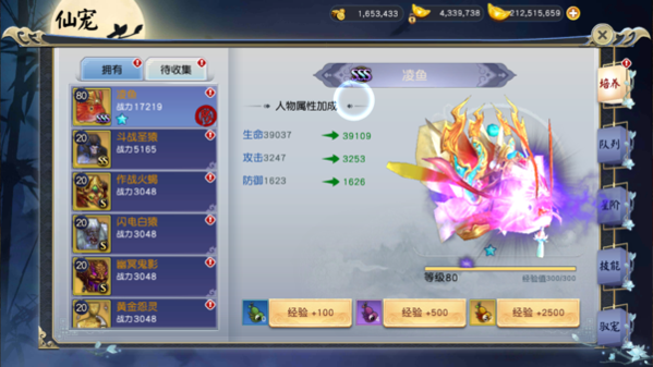 仙宠分为普通坐骑和稀有坐骑,分别为灰色品质(C级)、蓝色品质(B级)、紫色品质(A级)、橙色品质(S-SSS级)。以上四种颜色的品质依次提高,仙宠可在任务或仙宠抽奖中获得,也可以用仙宠碎片合成,仙宠碎片可在仙宠驯化中获得, 升级坐骑需要消耗坐骑升阶丹,阶数越高消耗的升阶丹也越多。还可让坐骑吞噬灵丹,即可永久提升角色属性。不同的灵丹获取方式不同,可在秘境、限时任务或藏宝图中获得。