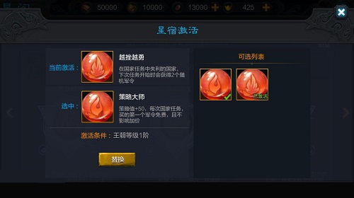 随着王朝等级的提升,“观星阁“将逐步激活强大的星宿之力,星宿之力将大幅强化该国玩家在国家任务期间的战斗力;