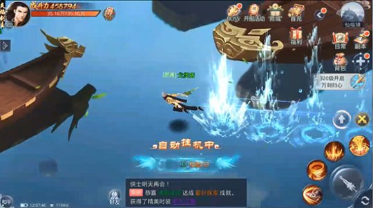 游戏中融入轻功玩法,人人皆可一展大侠风采。为了让游戏角色有更多施展轻功的空间,游戏中有很多高低错落的立体场景。玩家可操控角色于地图上下飞跃,比如施展水上漂,在狭窄的小舟上也能自如地挥剑战斗。