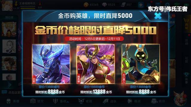 各位小伙伴今天等王者荣耀是不是都会看到上图所示的活动呢。对王者荣耀于今日又一次开启英雄直降5000金币的活动,此次降价的三位英雄分别为白起,雅典娜和太乙真人,降价后三者的价格分别为8888和13888和8888.。不过白起是可以通过冒险模式中的六国远征商店使用远征币获得,所以不建议用金币购买!(但如果不过任务的话那还是值得考虑的)
