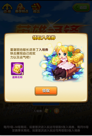 尽管船长们都是在伟大航路上叱咤风云的大人物,但来到“英雄争锋”,门票还是要正常支付的。不过为了确保各位船长能够玩的开心,每个赛季都将免费赠送多张入场券给到每位船长。