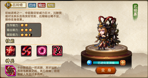 首发第一队。在第三关以后,把其他人换下,单独上吕布一人,记得是他一个人!第3到6关,运用吕布的大和回血能力,保证满血过关!