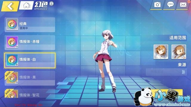 虽说主战和援护角色均可更换幻色,但是同一角色不同形态的服装是不可以通用的,是不是不太明白?举个例子:高坂桐乃穿校服的多个形态(包括主战和援护)可以通用校服形态的幻色,但高坂桐乃穿其他形态的服装就不能使用校服形态的幻色哦,毕竟穿的衣服不一样嘛,桐乃家得的衣柜可是很丰富的哦!