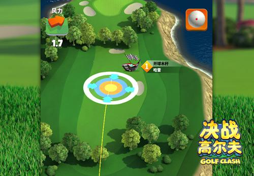 在《决战高尔夫》中,玩家间的竞技主要为1VS1的实时对抗。比赛开始前,玩家们可以事先设置好需要用到的球杆,之后只要选好比赛地图,并匹配好对手就能开始打高尔夫比赛了。和下棋一样,《决战高尔夫》中的比赛也有新手、后手轮的概念。轮到玩家击球时,需要在限定的时间里完成击球操作,不然就会白白浪费一轮机会。