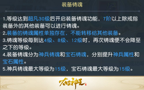 重要的事情再说一遍:装备铸魂虽然是对装备进行铸魂,但提升的是神兵和宝石的相关属性,而不是装备的。