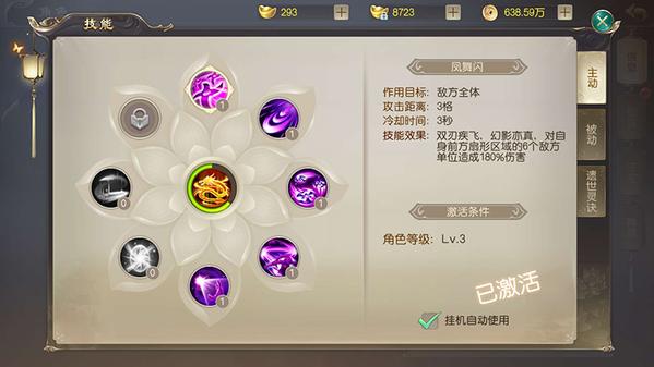 仙豆手游《灵剑劫》中共有三类技能,分别是主动技能、被动技能和辅助技能“遗世灵诀”。