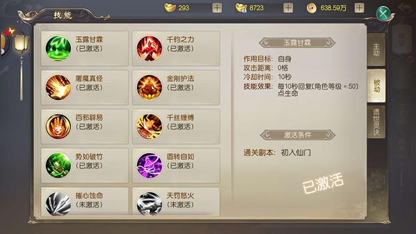 以上被动技能可以通过通关副本“突破之门”获得,每闯一关能激活一个被动技能,通关后点击任意地方即可自动领取!