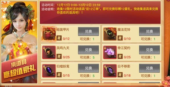 活动说明:收集12限时活动道具“双12订单”,即可兑换珍稀道具!