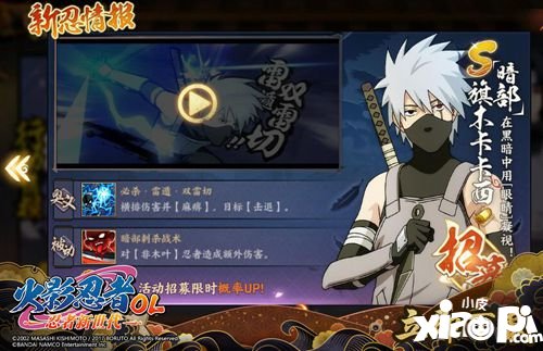 此次暗部活动也为所有玩家带来两位实力强悍的忍者。一位是旗木卡卡西【暗部】,游戏中旗木卡卡西【暗部】作为控制输出型忍者,具有很大的作用性。奥义技能“必杀·雷遁·双雷切”横排伤害并带“麻痹”效果,麻痹虽说是软控制,但可以限制对方主力输出打出连击。追打带有虚弱,是一大亮点。被动技能“暗部刺杀战术”可对非木叶忍者造成额外伤害,进一步加强了他的输出。被动技能“暗部伏击战术”己方小队内暗部忍者普攻时,卡卡西获得30%忍术和体术增益至回合结束,最多叠加3层。这会让他越战越勇。最佳的配置搭配是暗部成员,主角搭配推荐使用黑夜之刃,因为旗木卡卡西【暗部】能够得到雷主(黑夜之刃)的属性加成,搭配追打大浮空的忍者能够达到快速秒人的效果。