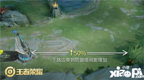 我们考虑到现在对局中会频繁出现的中路遇到敌方多人Gank的情况,所以在本次新版本中,略微提升了中路两边草丛的间距,降低了两边草丛对中路的威胁性,让中路英雄可以把更多精力放到对线与压制上来。
