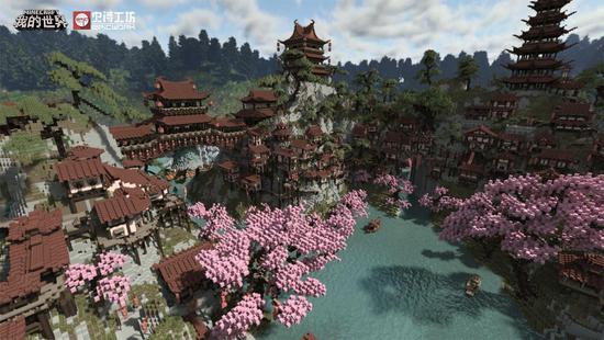 “忽逢桃花林,夹岸数百步,中无杂树,芳草鲜美,落英缤纷”这是陶渊明笔下的“桃花源”,也是我们大家对于桃花源的想象源头。“桃花源”存在于我们每个人的脑海里,但是却从没亲眼看过。而《我的世界》的知名建筑团队Epic Work史诗工坊在游戏中“创造”出了这个本质属于想象中的“桃花源”,将其具象化呈现在大家的面前。