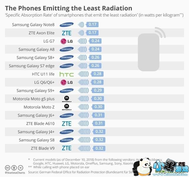 手机辐射排行榜是怎么回事?哪款手机辐射最大?大家一定很关注这个问题吧?小黑游戏网小编为大家带来了2019年手机辐射排行榜名单,一起来看看吧!