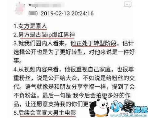 相信大家都知道随着2月14日情人节的到来,万千早已翘首以待的年轻情侣可以说是各秀恩爱甜蜜,当然娱乐圈中自然也少不了浪漫之风。近日便有知情网友爆料某爆红古装IP男神即将公开自己的恋情,时间便是选择在情人节这一天。这位网友的爆料虽然并未直接点名道姓,但是却给出了几条指向性相当强的信息点:男方是古装IP爆红男神,且目前正处于转型阶段。