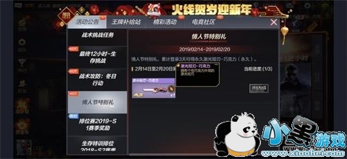 “累计登录送永久”,是元宵嗨枪节第三重福利。即日起至2月20日,玩家累计登录游戏3天即可100%获得永久人气武器:激光短刃-巧克力!作为情人节主题的武器,甜美的外观营造出最浪漫的氛围,致命的必杀使其成为近战武器的荣耀之光。可甜可盐的近战武器,绝对值得玩家们入手。