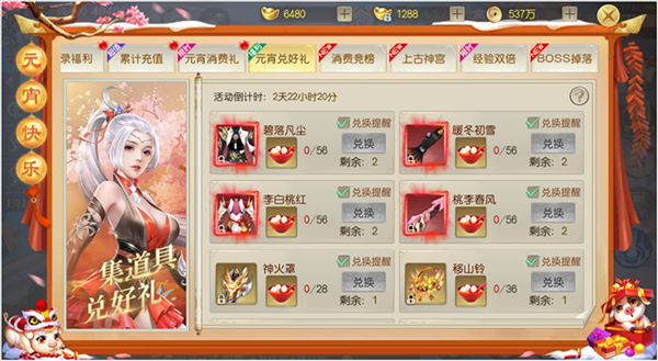 【活动内容】活动期间每消费123不绑定元宝(不含市场消费、提亲冻结金)可领取汤圆。集汤圆换大礼,红武饰-暖冬初雪/桃李春风、红时装-碧落凡尘/李白桃红、封魔图鉴、更有众多好礼等你兑。