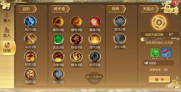 《蜀门手游》双人坐骑品阶技能开放在即,蜀友们可以使用双人坐骑天赋点升级已经解锁品阶技能,进一步的提升自己的移动速度,攻击,韧劲和队友伤害加成。同时也可以为自己的战力添上一笔!