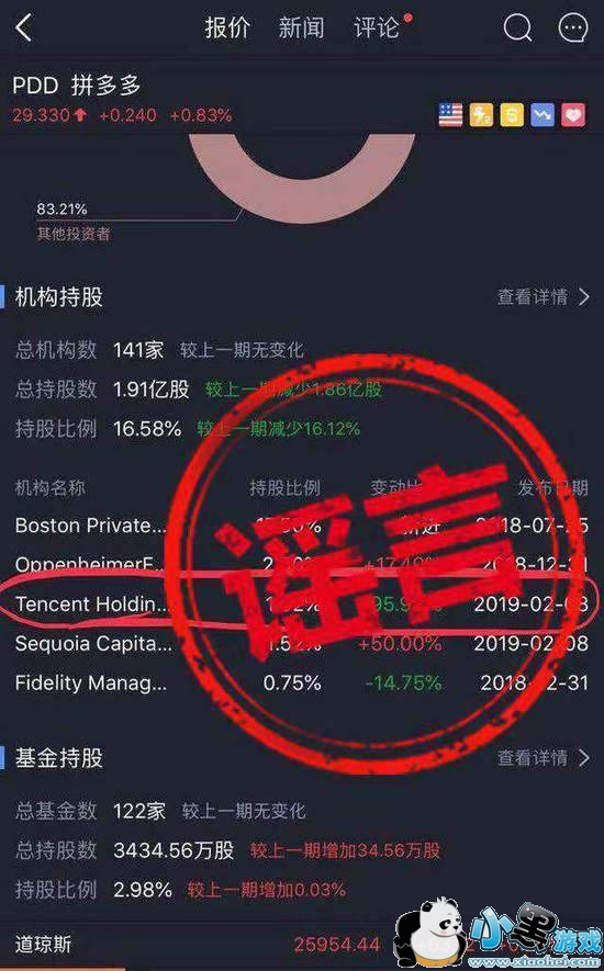 具体,富途牛牛显示红杉、腾讯大幅减持拼多多,沈南鹏减持拼多多达到94.99%,腾讯减持95.98%,两家持股基本清空。随后拼多多官方回应称,此消息为谣言。红杉资本回应:传闻不属实。