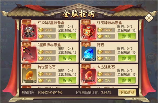 【活动内容】极品红色装备、珍稀符文、极品圣物限时限量出售,更有海量符文经验、弑神石礼盒低至1折,买到即赚到。