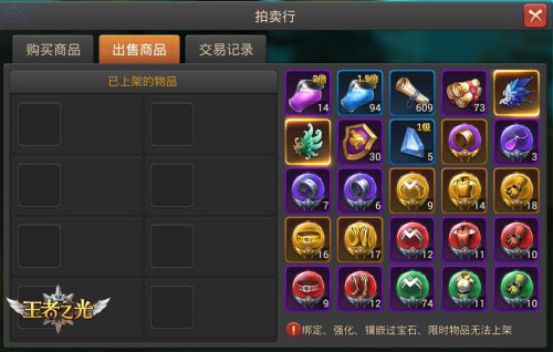无论是在拍卖行中出售商品还是购买商品,拍卖行都会为大家在第一时间进行跟踪记录。让大家在进行交易的同时,可以随时留意背包中物品的存储情况,做到心中有数。 就像你的私人小管家一样,是不是很贴心呢?