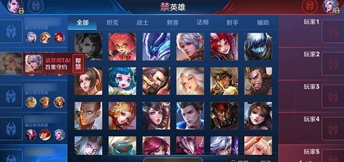 当队友点击想禁某个英雄,有禁用权限的召唤师可看到对应的气泡消息上有“帮禁”按钮,点击“帮禁”按钮可以直接帮队友禁用该英雄~