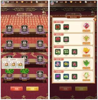 ? 御花园:如其名,就是种花养草的地方,在这里,陛下可以通过种植的花来合成各类花语,譬如“相思红豆”、“沧海映雪”,这些组合自带不同功能,用来赠送强化属性,当然,要记得施肥哦;