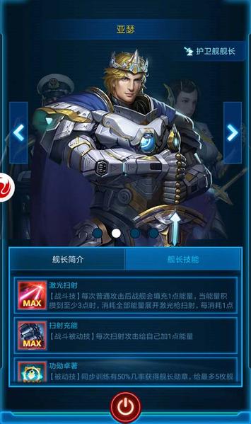 马歇尔舰长率领巡洋舰,搭配战斗技“高能轰击”,可进行灼热激光打击;战斗被动技“轻灵舰体”,将给自身增加额外闪避。