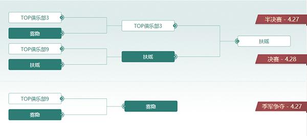 4月28日19:00,巅峰对决开启,成功会师总决赛的TOP俱乐部3队和扶瑶上演了6小时夺冠大战,期间两次抢赛点,直至第五局扶瑶抗住压力惊险翻盘,最终以3:2的比分击败TOP,斩获春季赛冠军!而在同时开赛的季军赛中TOP俱乐部9队1:2不敌雾隐战队,止步殿军。