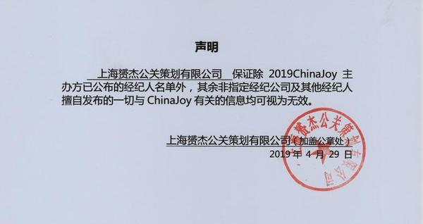 2019ChinaJoy指定经纪公司-声明(排名不分先后)