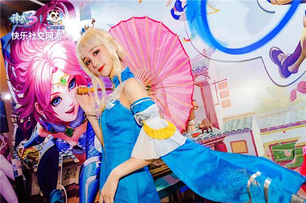 作为《神武3》系列游戏中的强力宠物,“雨师”Coser小姐姐在展会期间,一袭蓝色长裙亮相,金色的长发尽显优雅、温婉形象,配合国风韵味十足的粉色油纸伞,可谓惊艳全场!