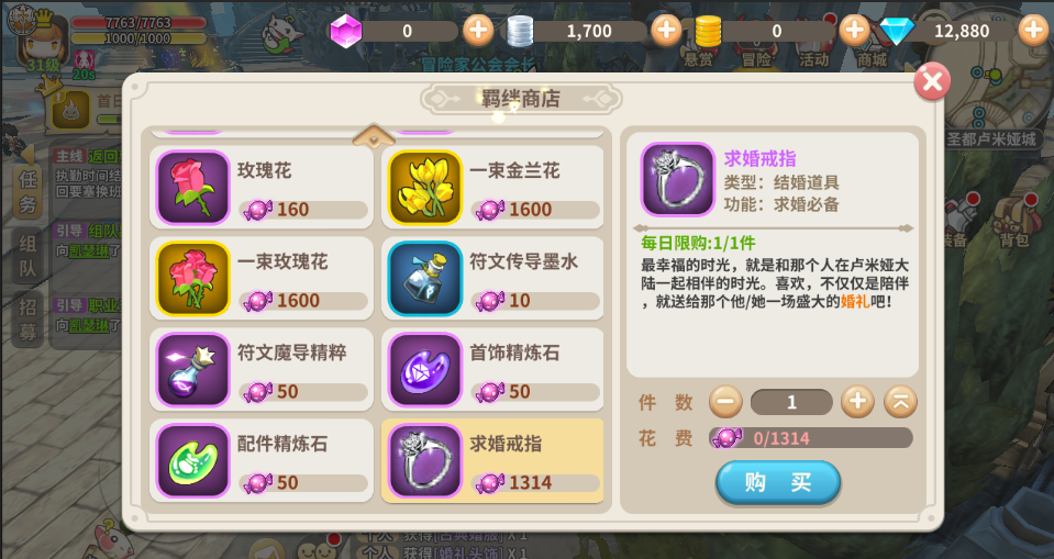 想要向心仪的对象求婚,首先当然要拥有一枚像样的结婚戒指啦,各位萌主大人需要通过自己的努力,收集糖果,集齐1314颗即可兑换结婚戒指,向自己的羁绊求婚啦!当然,之前获取的求婚戒指一样可以使用哦~