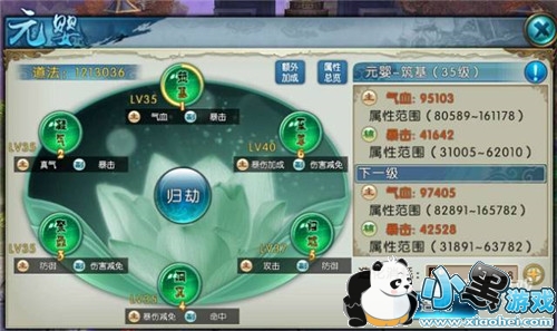 归劫可以把元婴的属性来充值,而玩家只要把元婴造化提升到30级在归劫,归劫可以解锁1-2个属性,其中低VIP的玩家,把造化等级升到20级然后在提升到40级时候,基本上就有140万的道法。