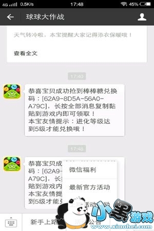 只需要关注《球球大作战》官方微信公众号,回复“兑换码”,即可领取关注奖励哦