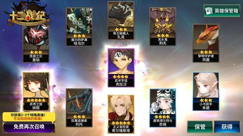 本次对于新手教程抽卡环节的优化实在是强到吓人,所有新加入的骑士均可获得一次特权——无限重置十连抽。并且每次抽卡都能获得2~3名不重复的特殊英雄。首次十连抽时,每位玩家均可无限次的“抽卡”,遇到喜欢的英雄就将他保存在保管箱中,最后可以在临时保管箱里确定最后陪伴你开始旅程的11位英雄,你准备好了吗?
