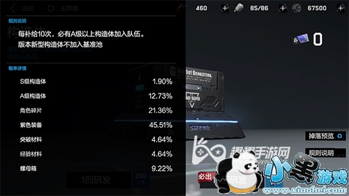 目前S级构造体的概率为1.9%,也就是你大概需要抽取50-100次以上,才可以得到一个S级构造体,这个概率小黑游戏小编个人觉得还是比较低的,但是一旦得到了就可以让玩家的水平更上一个档次。而A级的话就比较容易抽到,大概抽个10次就可以有一个,其中十连抽保底也是A级构造体。
