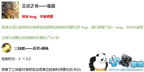 张良的改动其实是修复了一点问题,看上去是将控制时长增加了0.2秒。但实际上意味着张良的大招将会受到韧性鞋的影响,也就是说张良的大招相比于东皇还是差了一点优先级,见到张良肯定要出韧性鞋,实际上控制时间是变短了的。