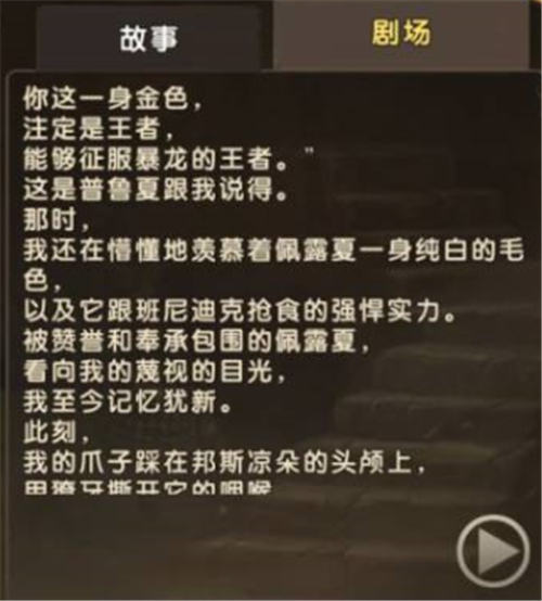 金虎在整个贝鲁卡系的存在都是特殊的,在宠物剧场中就可见一斑,它的情节不同于其他老虎的剧情,在一开始就告诉了我们它注定将成为王者,它也的确做到了,它拥有最帅气的金色皮毛和最强悍的力量,在征服暴龙的时候,它就已经成为了王。