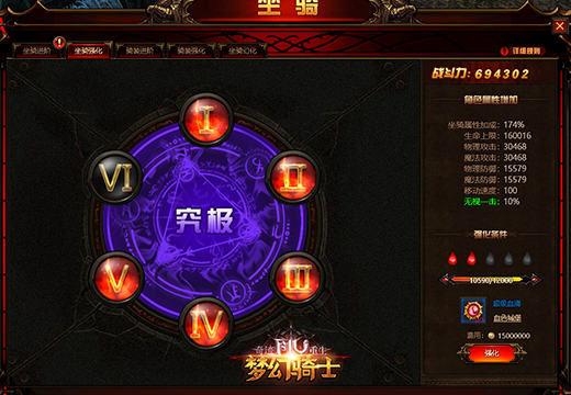 除了通过坐骑升阶来再加强我们“座驾”的属性,“坐骑强化”系统也是我们进一步强化坐骑的关键。随着坐骑不断强化,将经历“初生期”“成长期”“成熟期”“觉醒期”“巅峰期”“究极期”6个阶段。特别是达到了究极期的坐骑才称得上是真正的猛兽,骑上它任何敌人都不过是浮云!