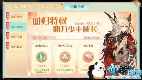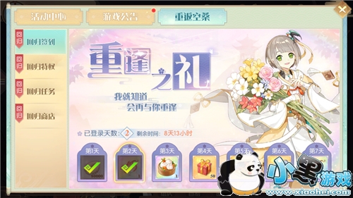 回归的老玩家享有【签到】、【特权】、【任务】、【商店】这四种专属奖励,其中签到和任务的持续时间为9天,特权和商店的持续时间为6天。